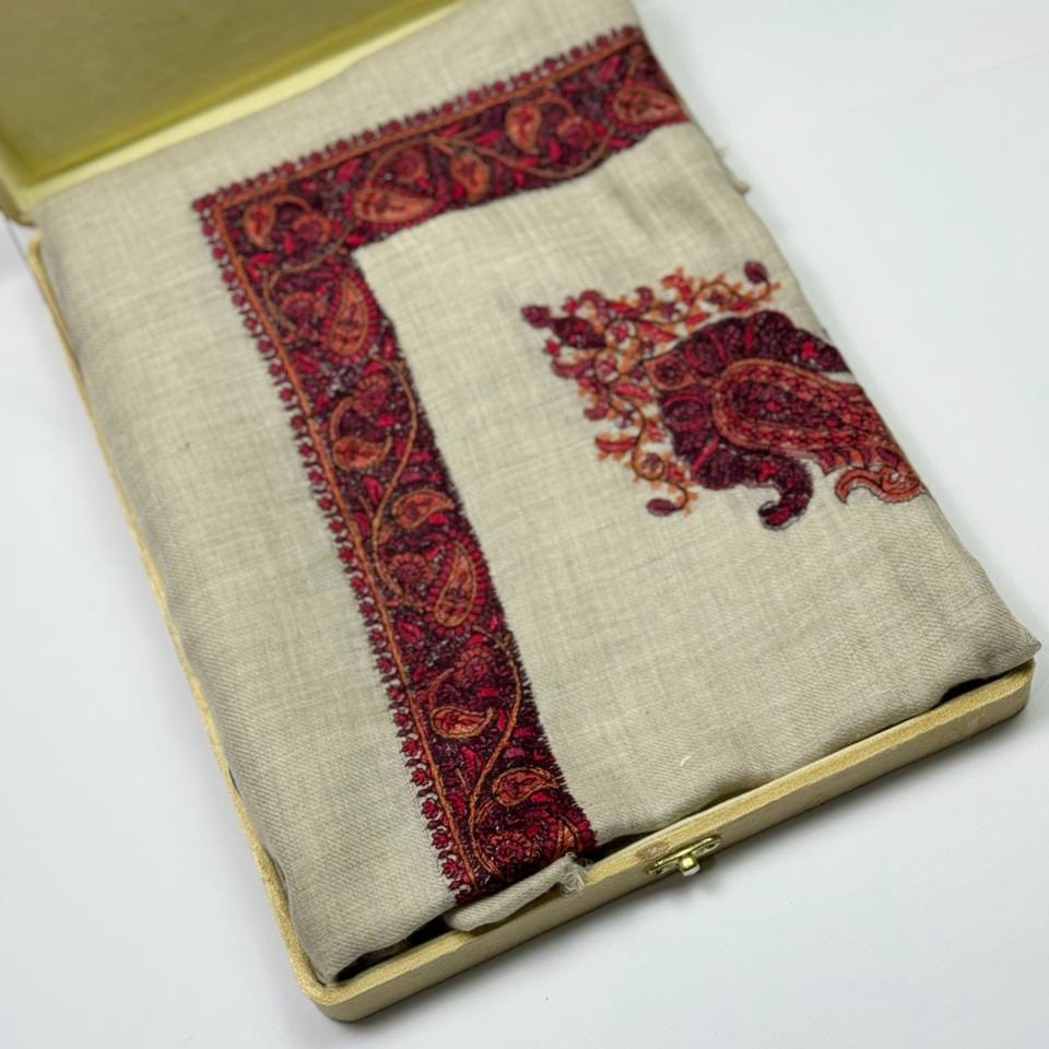 Experience timeless elegance with our Premium Kashmiri Romal, crafted with a fine woven texture and finished with a classic paisley border inspired by Kashmiri heritage.